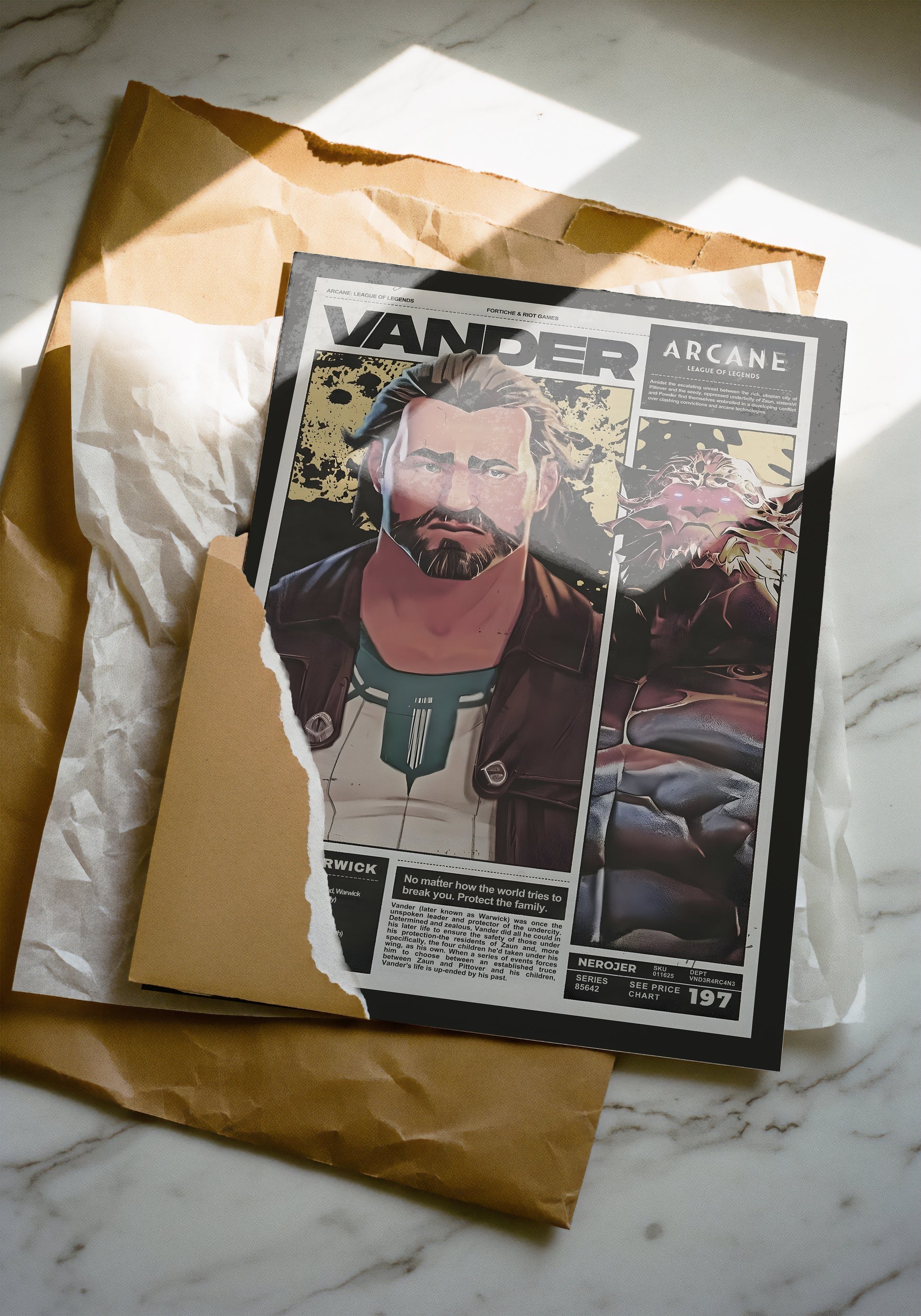 This poster pays homage to Vander, a father figure and moral pillar of Arcane, the embodiment of sacrifice and responsibility in a world ravaged by violence.